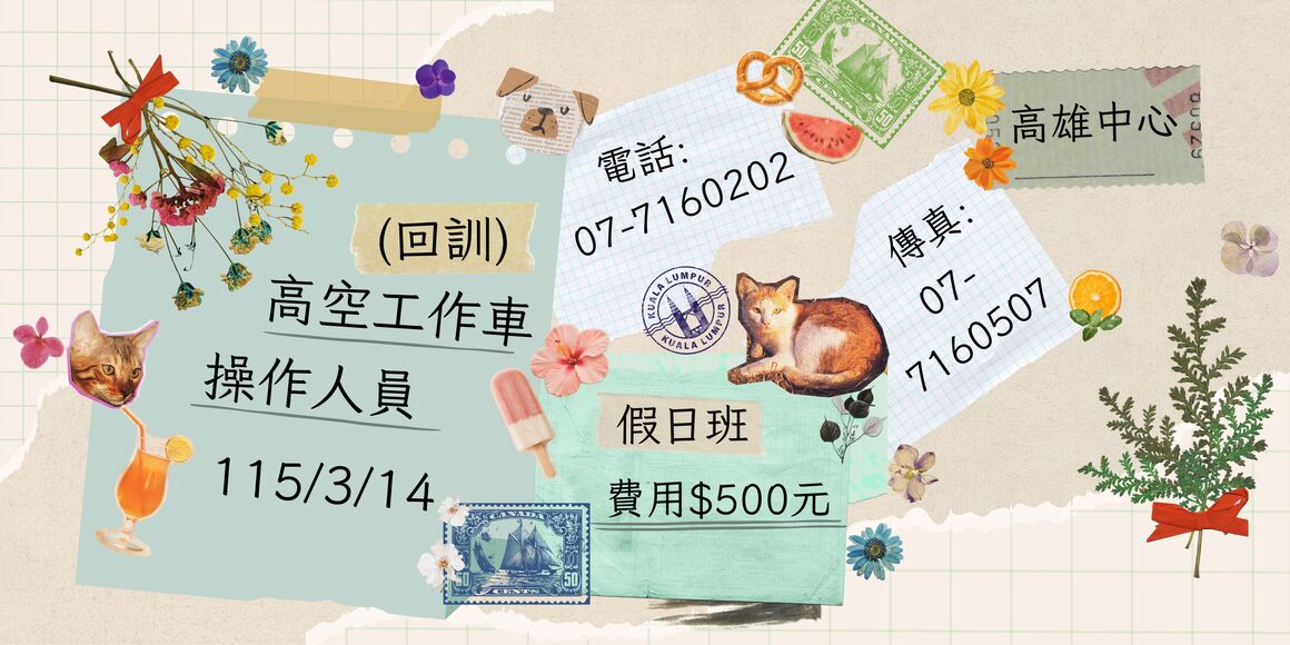 (回訓) 高空工作車操作人員在職教育訓練 *開課日期:115/03/14(六)