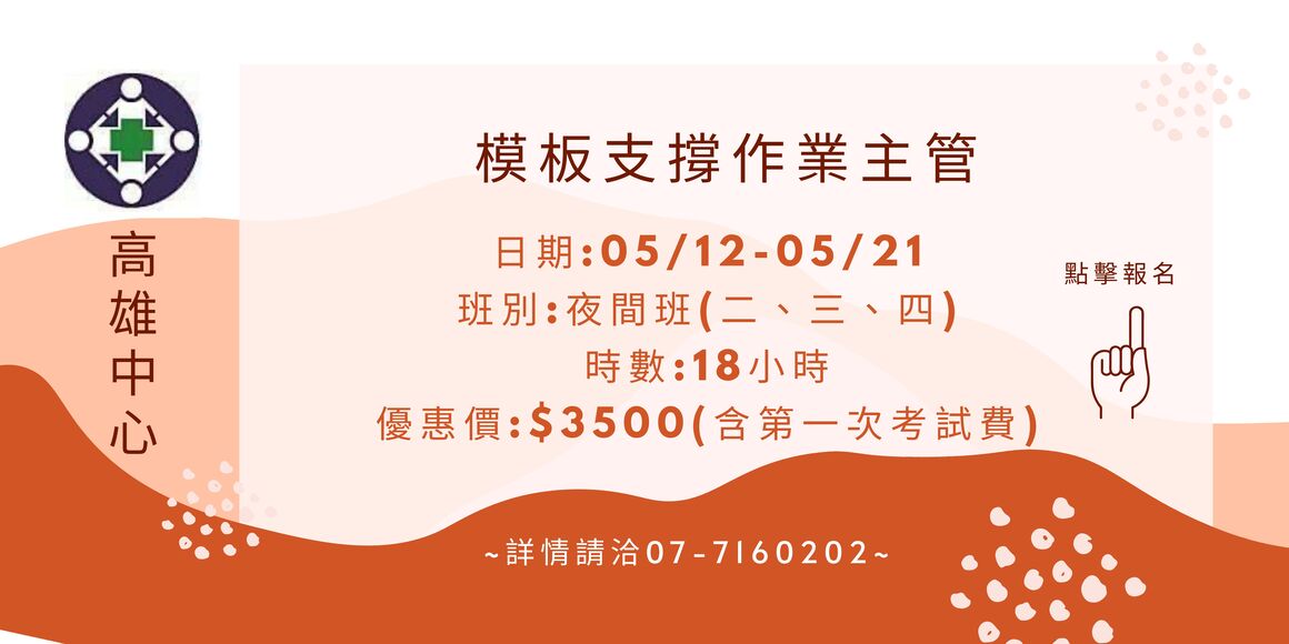 (初訓) 模板支撐作業主管安全衛生教育訓練 *開課日期:115/05/12-115/05/21