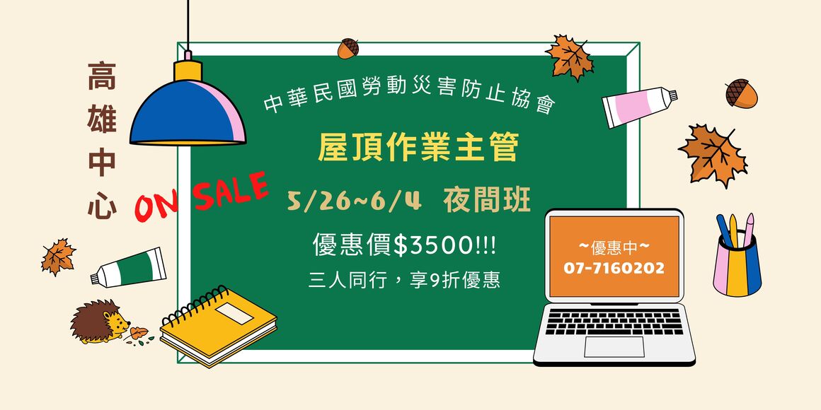 (初訓) 屋頂作業主管安全衛生教育訓練 *開課日期:115/05/26-115/06/04
