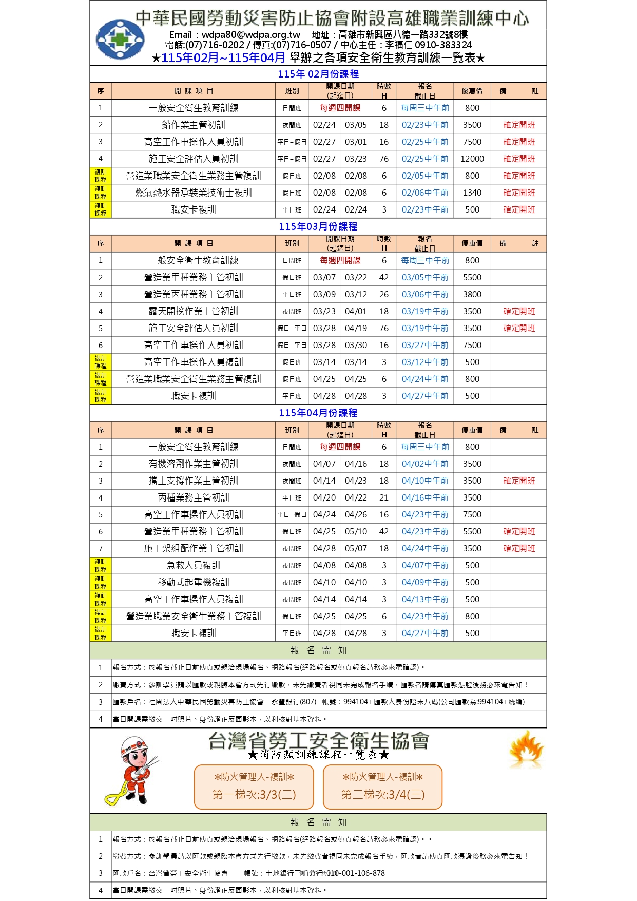 一般安全衛生教育訓練(一般業、營造業) *開課日期:115/04/15-越南班*請來電確認*